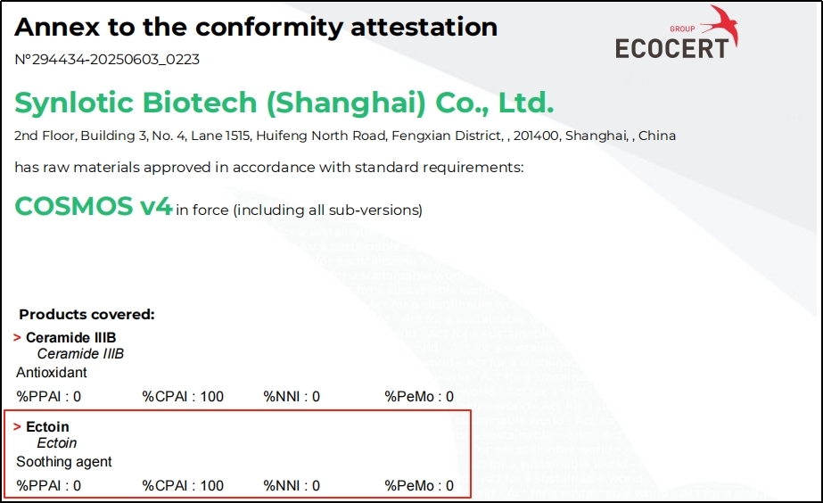 Baru -baru ini, Yikeduoyin yang dihasilkan oleh Shanghai Yunluo telah memperoleh pensijilan semulajadi EU Cosmos yang diberikan oleh EcoCert di Perancis.